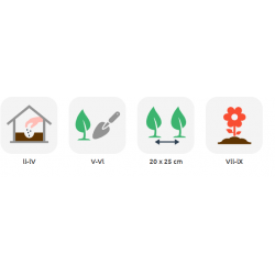 Vienmečiai. Išaugina daug žydinčių iki 60 cm aukščio elegantiškų stiebų. Žiedai apvaliai skėtiški, baltos, melsvos ir mėlynos spalvų, iki 6 cm skersmens. Žavingai atrodo gėlynuose, puošnūs puokštėse, labai ilgai laikosi vazose.